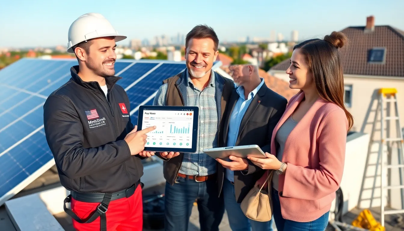 A technician schedules a site visit. The technician inspects roof strength, orientation, and shading. The company provides a written proposal and system design. The customer signs the contract. The installer orders parts and schedules the install. The crew mounts panels, connects the inverter, and ties the system to the building meter. The installer commissions the system and hands over monitoring credentials.